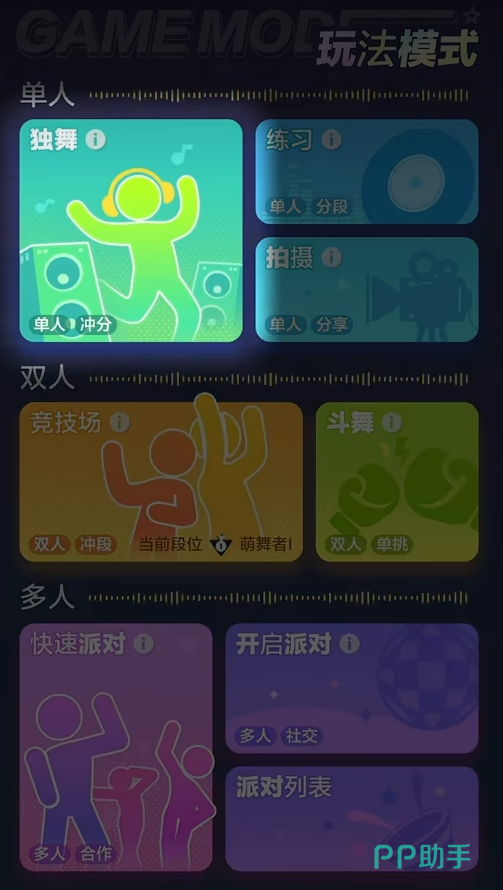 除深度定制化衣橱外,《舞力全开派对》融合先进AI体感技术,依托设备摄像头实时捕捉肢体动作,精准识别甩臂、踏步、转身等舞蹈要素。配合节奏鲜明的流行曲库,实现边跳边燃脂的健康运动体验。支持即时组队机制,可自主选择与好友或系统匹配的玩家协同闯关,在动态协作中强化舞蹈默契,释放派对能量。