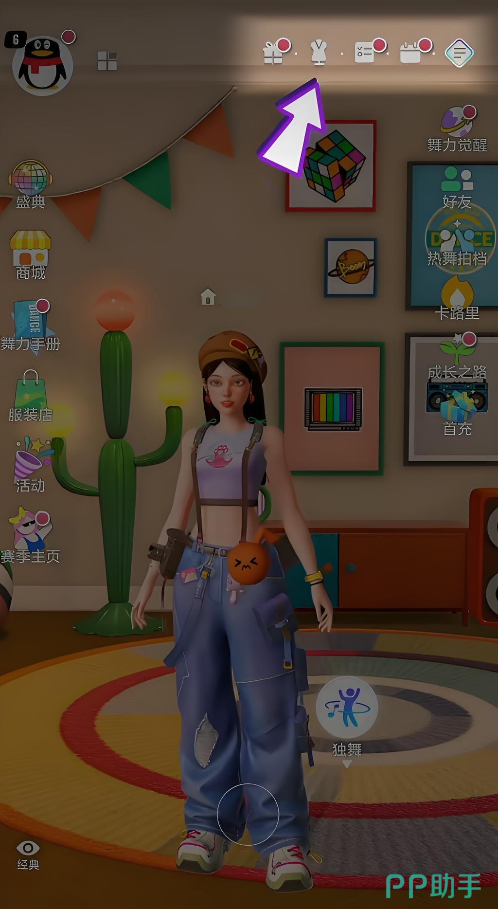 启动游戏后,主界面布局清晰,功能入口集中。部分新玩家可能对核心玩法入口定位不熟悉——衣橱功能图标位于主界面右上角,标识为简洁明了的“衣架”图形。点击即可进入专属虚拟衣橱,内含海量服饰、配饰及外观部件,支持自由组合与预设保存,助你在每场派对中展现独特舞台气质。