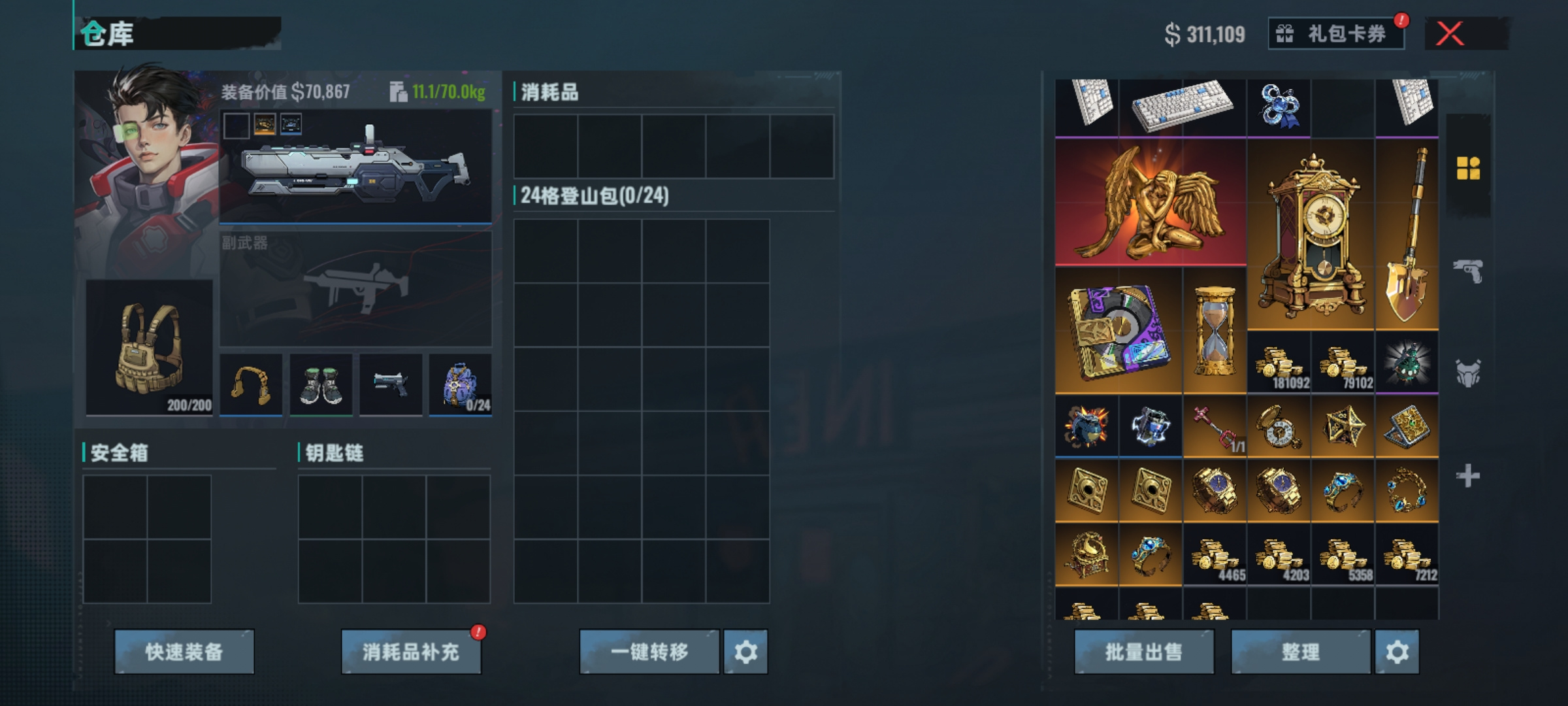 游戏中玩家的背包,在刚开始的时候背包的容量也是有限的只有12格,建议玩家一定要优先收集紫色品质较高比较热门的物资,比如说金苹果,它能够让玩家在生命值急速下降时,立刻回升玩家的生命值血量,在交易中心的商店里还具有高度流通的价值,第2个就是比较少见稀有的载具。比如说复古式的留声机。和马桶这些都是非常保值的物品,而且还容易售卖,但要避免一些低价值的物品,比如冰块,不但占用位置价值也不高。