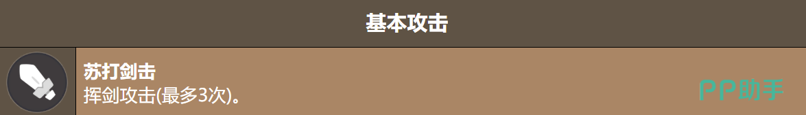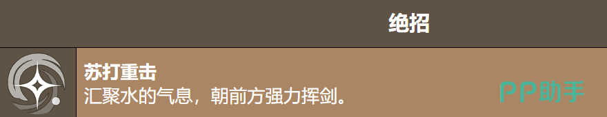 绝招「苏打重击」是一个前向的强力挥剑,伤害集中,打出去很爽。绝招用完同样会触发被动,所以绝招之后也要记得接基本攻击叠层。绝招的冷却时间相对长一些,不要随便乱用,留在关键时刻打出去效果更好。