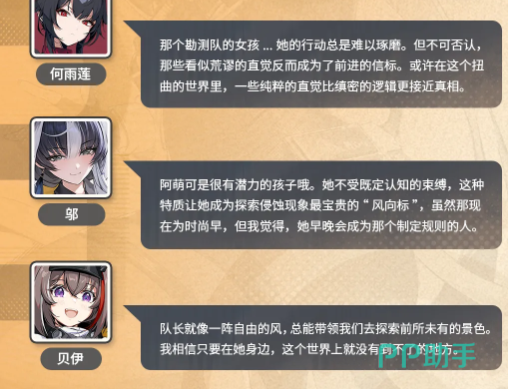何雨莲曾评价:“她的思维从未被既有范式驯服,因此在规则崩塌之地,她天然具备重建坐标的资质。”在这个逻辑常失效、因果难成立的世界,阿萌的纯粹性本身即是一种稀缺资源。她能承受断粮三日、负伤前行、昼夜穿行于畸变裂隙,却无法容忍一刻的停滞与空白——无所事事时,她会反复拆解一枚齿轮又重装,或对着风向变化记录十七种云影位移。这些“无意义”的举动,恰恰赋予角色以呼吸感与真实温度。