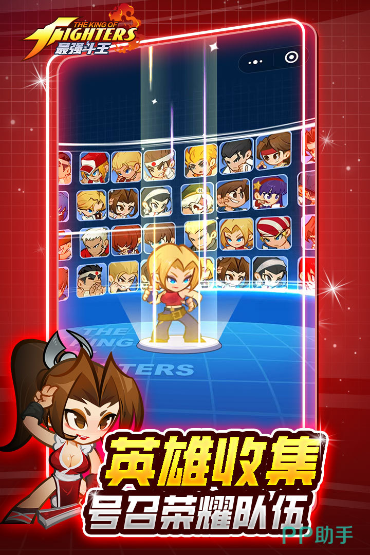 游戏高度还原《拳皇》系列经典IP,草薙京、八神庵、不知火舞等标志性人物悉数登场。角色建模兼顾辨识度与现代审美,动作设计严格参照街机原版节奏——大蛇薙的爆发轨迹、八稚女的连段逻辑均精准复刻。技能演出强调打击反馈与帧动画细节,配合高质量语音配音,让每一场PVP或剧情战都具备沉浸式格斗张力。