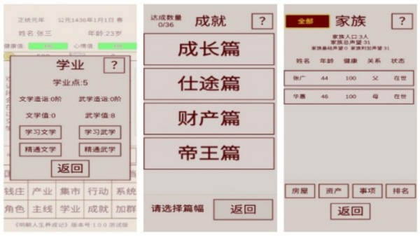 想要化身古代人,开启一场奇妙的古代人生模拟养成体验吗?在《明朝人生养成记》中,你可以尽情挑战种田、发展生意,或是官场进阶等内容。融入真实历史时间以及时代发展变迁,也能令大家在游戏之余,领略明朝这一时代的风云涌动变幻。大量的任务以及选择,也会影响整体剧情的走向,自由度极高。