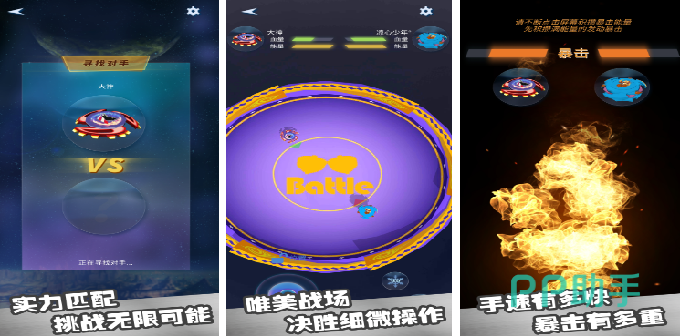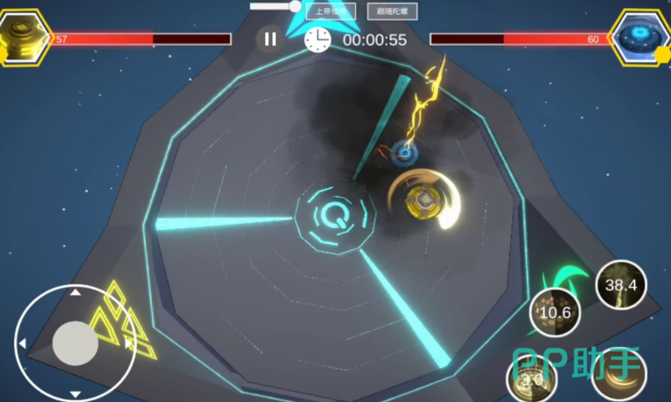 本作聚焦1v1实时对战,采用擂台制匹配模式。玩家需预先装配专属陀螺,每台设备配备两项主动技能,技能释放依赖能量条管理;血量为唯一胜负判定标准,先将对手击至零血者胜出。操作采用全屏滑动控制,实现陀螺转向、加速与技能衔接,强调反应速度与资源分配能力。