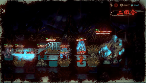 一个黑暗武侠风回合制策略手游,游戏中的战斗在6×6的棋盘上进行,单位移动和攻击遵循类似象棋的规则但更复杂,每回合都有有限的行动点数,需要玩家合理分配给不同角色,角色分为豪杰和至尊两类,豪杰死亡后永久消失,至尊可以消耗资源复活,击杀敌人能积累魂能释放技能,而且地图采用随机拼接模式,包含障碍、高地等多种地形且会动态变化,策略性更高。