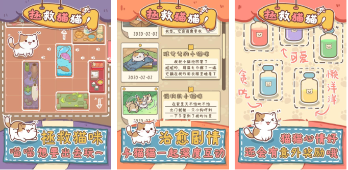 本作是款需要玩家快速营救小猫的免费手游,小猫猫会被困在形形色色的困境中无法逃脱,玩家的任务则是与周围环境进行互动拯救小猫咪,很有趣味性的解谜玩法和高精度画面都是亮点,游戏美术表现可爱生动让无数爱猫人士流连忘返,大量与猫猫元素为主题的好玩任务可玩性不错。
