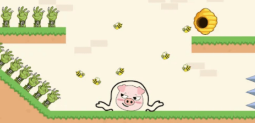 采用经典的画线玩法为核心,用手指在屏幕上左右滑动,就可以成功拯救这些小猪。但是每个关卡中所面对的任务是完全不同的,有可能猪的身旁会有大量的蜜蜂所追击,而下方又会凸起尖刺,因此大家必须要正确划线,才可全方位保护猪猪。
