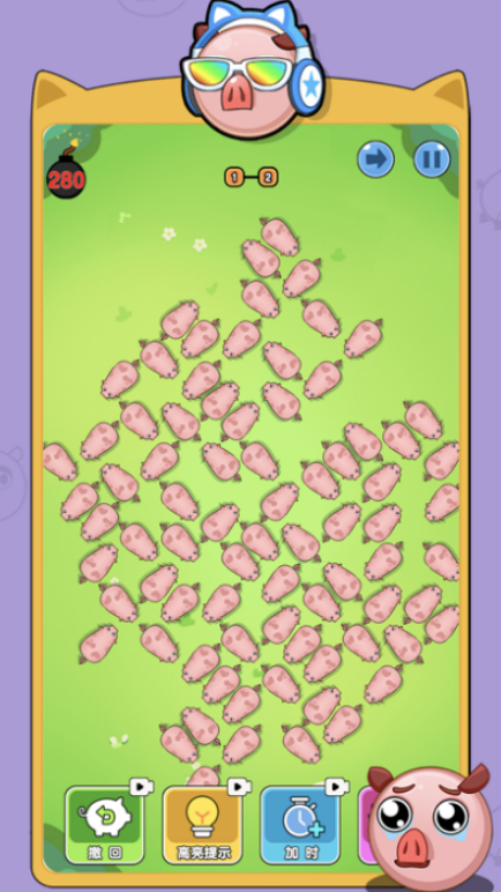 海量精心设计的关卡内容中将会有不同的小猪类型,而每个关卡中所呈现出来的猪所处的方向是完全不同的,在闯关时,大家必须要在规定的时间之内,将这些农场当中的猪全部驱赶出去,就可以轻松畅玩,在每个关卡中都提供很多辅助道具,包括炸弹或者是加时等等。