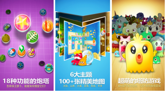 Q版可爱的画风所展现。自从上线之后就已经获得了超高的下载量,由海量精心设计的关卡内容组合而成,而大家在其中核心的任务就是需要想方设法保护好自己的萝卜。每关中都会呈现出不同的怪物入侵,千万不要让这些怪物将萝卜吃掉。其中还有上百种不同的炮塔类型,任由大家来放置,需要结合敌人的类型,或者是地形的环境来巧妙设置。
