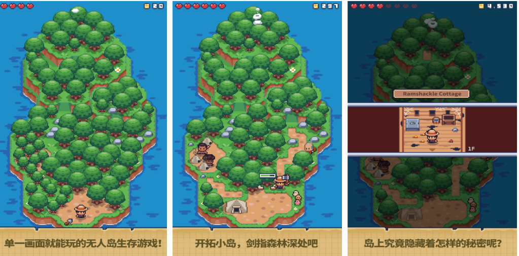 本作也是款可以给人提供孤独感的模拟生存类型游戏,荒岛生存的游戏设定和像素一般的地图展现都是特色,岛屿上也有着更多的秘密地点等待玩家探索,求生类的玩法和娱乐性十足的内容都是玩家最爱,像素沙盒的游戏玩法更增加了整体的耐玩性,迷你荒岛求生是不少岛屿生存爱好者喜欢的。