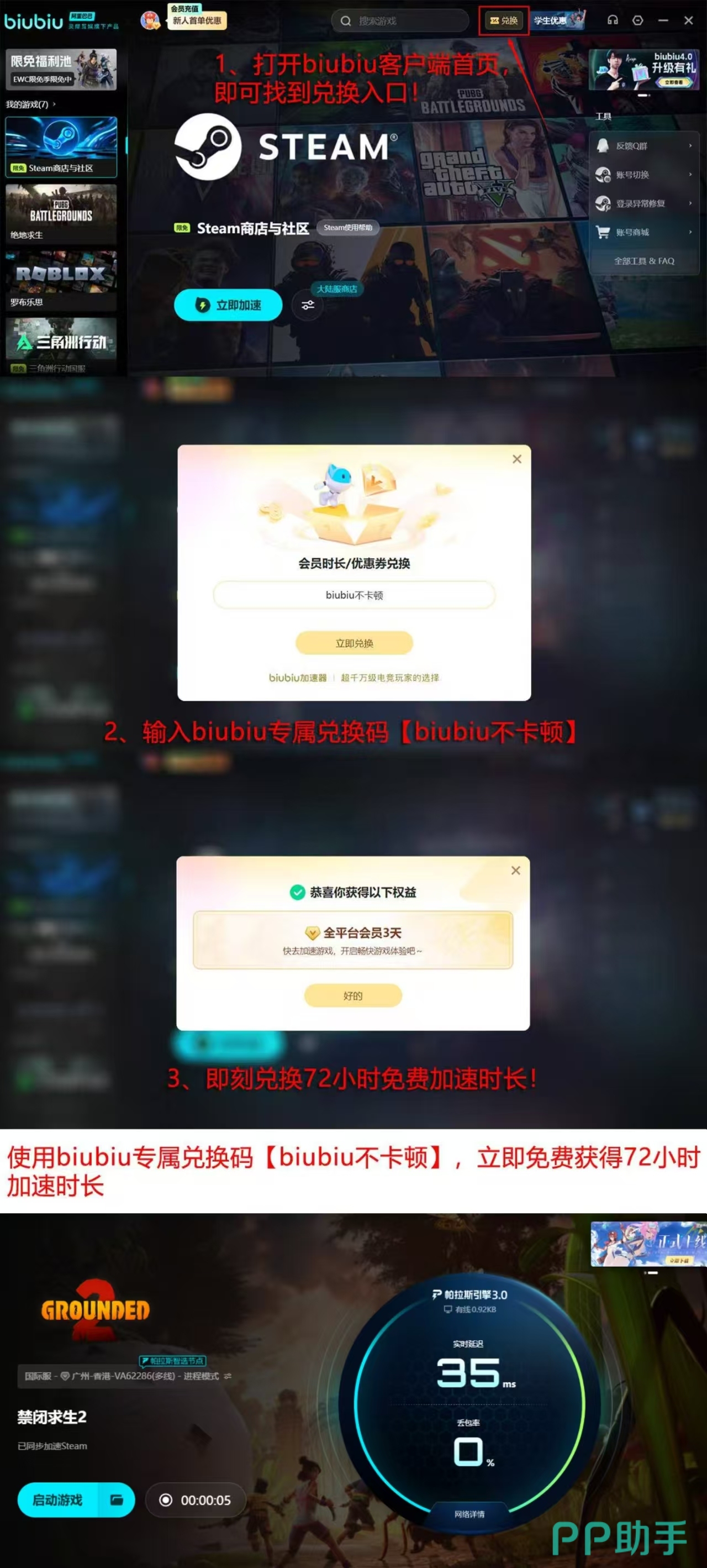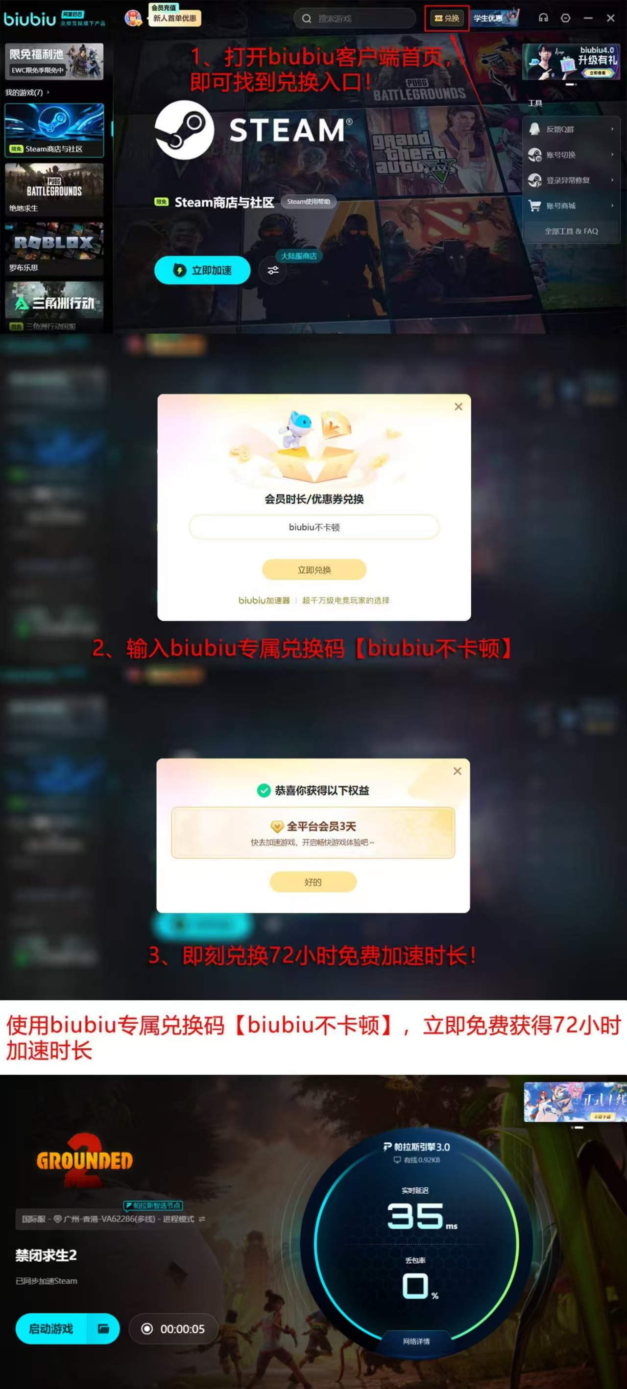 新用户注册biubiu加速器账号后,自动获得24小时全功能试用权限;输入专属兑换码【biubiu不卡顿】,还可额外激活72小时无限制加速服务。该机制支持玩家在正式订阅前完整验证其对《禁闭求生2》的适配表现,包括但不限于大厅匹配速度、世界同步稳定性、语音通话清晰度及建筑操作实时反馈等关键指标,确保投入前充分评估实效性。