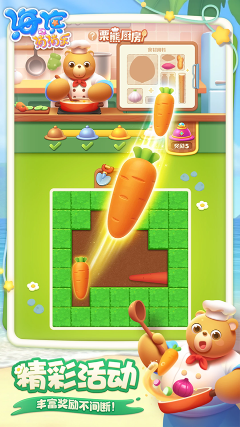 以热带海滨为背景,消除对象扩展至椰子、菠萝、海星、贝壳等特色元素。关卡中设置多重障碍:蜂蜜罐需多次点击才能打破,冰块需相邻消除三次方可解冻,果冻层则需穿透式匹配。玩家需在有限步数内统筹规划移动路径,优先处理障碍物或生成特效道具,方能高效达成收集软糖、运送水果等多样化目标。