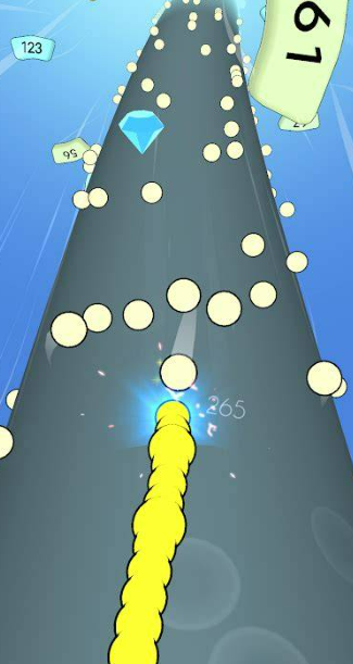 采用极简主义视觉语言,专为舒缓型用户设计。游戏空间限定于二维螺旋轨道,玩家仅需控制蛇头沿固定弧线匀速前行,收集轨道上的发光节点延长躯干,核心风险点为轨道外缘及自身缠绕重叠区域。界面无冗余UI、无动态弹窗、无高频闪烁,配色柔和,帧率稳定,长时间运行不引发视觉疲劳,契合现代人对低刺激、高可控性数字疗愈内容的需求。