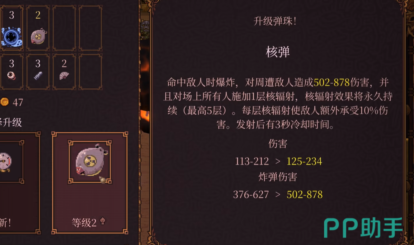 弹珠品质直接影响核弹最终性能上限。游戏中弹珠按“差、中、好”三级划分,合成后可通过升级系统强化核弹属性:包括基础伤害数值提升、辐射作用半径扩大、以及冷却时间缩减等维度。建议优先提升前置材料“炸弹弹珠”与“中毒弹珠”的等级,确保合成起点质量,从而获得更高成长潜力的成品核弹。