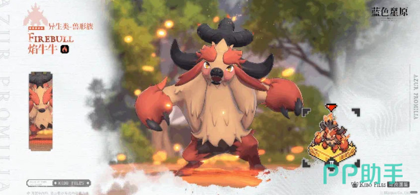 烈焰角牛是《蓝色星原:旅谣》中极具辨识度的高阶奇波之一。其立绘设计突出“沉稳巨构”风格——体格雄浑、角焰灼灼,神态内敛而威压十足,与幼年期冲动冒进的性格形成鲜明对比,展现出典型的成熟期战术判断力与战场掌控感。当前版本中,该奇波已进入完全成熟阶段,定位为火属性独猎单位,实战表现备受玩家关注。
