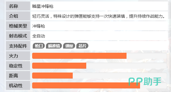除续航优化外,该武器还具备轻量化结构特点,显著提升角色移动灵活性。无论是侧翼包抄、快速转点,还是战术撤退,均不会因武器负重影响操作流畅度。此外,瞬星冲锋枪支持四类可更换配件:瞄准镜、枪口装置、芯片与弹匣。玩家可根据实战需求自由组合——例如选用高伤芯片强化单发输出,或装配红点瞄准镜提升中近距离瞄准精度,实现高度个性化的战力配置。
