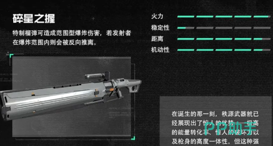 碎星之握:该榴弹发射器以AOE覆盖强度见长,单发爆炸半径达12米,中心区域造成320点固定伤害。团战中投掷至敌方密集区域,可触发群体硬直与位移效果——爆炸反冲力使使用者自动后退约3.5米,既规避溅射伤害,又辅助完成战术走位调整。其独有的物理反馈机制,在当前所有范围型武器中属独有设计。