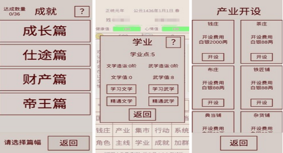 以明代社会结构为历史基底的文字驱动型模拟养成游戏。无强制剧情分支,全程采用高自由度沙盒模式:玩家可从底层农民起步,经科举入仕、经商致富或隐逸山林等多元路径发展角色。经济系统、人际关系、时间管理与随机事件共同构成成长维度,所有决策均以文字反馈形式呈现,对设备性能要求极低。