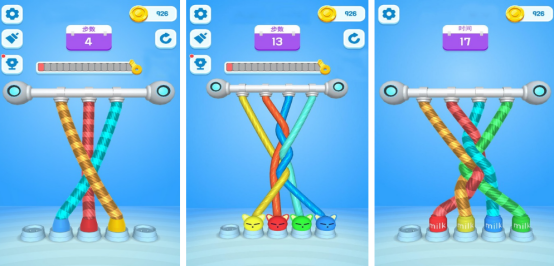 采用清新简约美术风格,聚焦绳结物理逻辑模拟。关卡分为步数限制型与倒计时型两类:前者要求在限定操作次数内理清全部缠绕路径;后者需在紧迫时限内完成解构,通关后解锁更高复杂度的绳网结构。