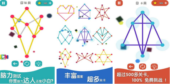 基于拓扑学原理设计,每关提供若干离散分布的锚点,玩家须以单次连续划线方式连接全部节点,最终构成目标几何图形。全程支持提示、重置等辅助功能,全部300+关卡开放免费挑战权限。