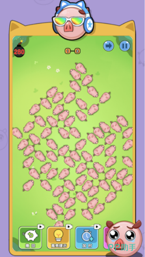 采用滑块式路径规划机制,灵感源自传统华容道逻辑。关卡中多只小猪呈不同朝向排列于网格内,玩家需通过平移障碍物与猪体本身,为其开辟唯一逃生通路。随着关卡推进,猪只数量递增、移动方向约束加强,解法唯一性与步骤最优性成为通关关键,考验玩家系统性拆解复杂局面的能力。