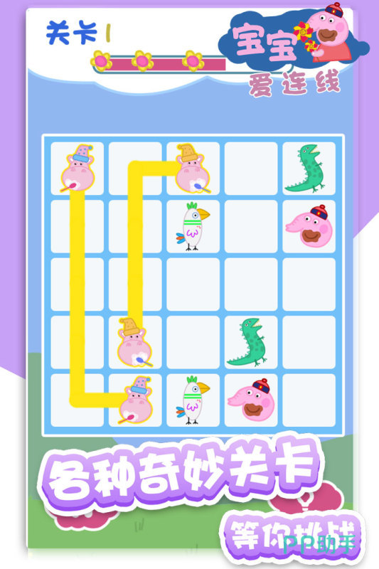 专为幼儿优化的图形配对类游戏,界面元素精简,交互指令明确。玩家仅需用手指连接指定图案(如相同动物、颜色或数量),避开障碍线完成匹配。每关设定差异化规则(如单线/双线、限定步数、镜像对称等),锻炼图形识别、模式归纳及短期记忆能力。整体采用扁平化卡通风格,视觉舒适度高。