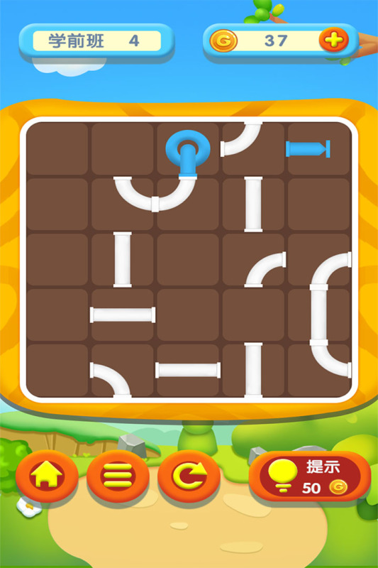 采用阶梯式难度体系,按学前能力划分为多个等级,需逐级通关解锁。核心玩法为旋转、平移不同形状的水管组件,构建连续通路使水流抵达终点。过程中涉及方向判断、路径预演与空间试错,潜移默化提升幼儿序列思维与手眼协调能力。
