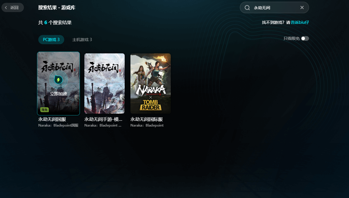 除本地环境外,网络链路质量亦是影响稳定性的关键变量。多人对战场景下,若遭遇高延迟、丢包率突增或路由抖动,极易触发强制退出机制,导致关键局内掉线甚至段位积分损失。此时需启用专业级网络加速服务,通过智能节点调度与协议层深度优化,保障UDP数据包的低损传输。具体操作为:启动加速器后,在列表中选择《永劫无间》专属线路,点击一键连接,即可建立直连通道。
