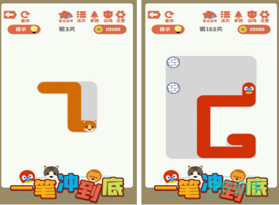 极简风格路径填充类解谜游戏。玩家需操控呆萌动物角色,在限定网格内规划唯一通行路线,确保覆盖全部空格。关卡设计强调观察力与顺序思维,通关后奖励金币,用于解锁新动物头像。UI无文字干扰,操作仅依赖方向滑动,符合低龄儿童交互习惯。