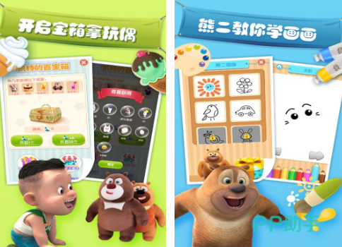 融合绘画创作、虚拟养成与轻度模拟经营的复合型儿童向应用。以经典IP熊大熊二为核心形象,提供涂鸦画板功能,支持自由绘图与模板填色;内置宝宝领养系统,需完成喂食、清洁、互动等日常照料任务;另设农场模块,可种植作物、收获资源,体验基础资源管理逻辑。全程单人离线运行,无社交压力与付费诱导。