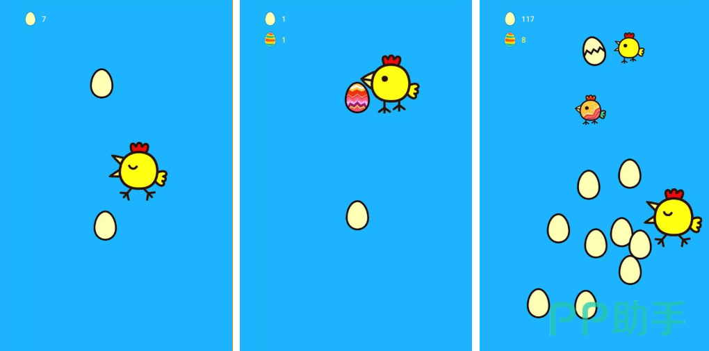 这是一款以“产蛋—孵化—收集”为核心循环的模拟养成类休闲游戏。玩家操控一只拟人化小鸡,在限定区域内持续产出不同颜色、图案的彩蛋。每枚彩蛋具备独立属性,孵化后可解锁新角色、装饰或场景。真实鸡鸣音效搭配轻快BGM,强化沉浸氛围;盲盒式孵化机制进一步提升重复游玩意愿。
