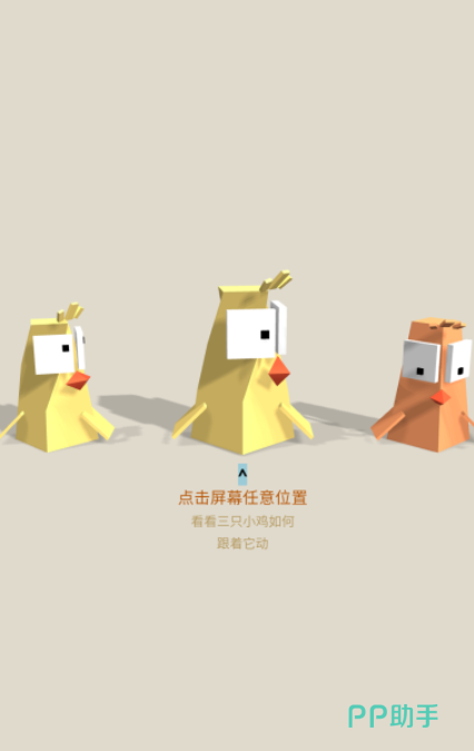 抽象艺术风格的点击式互动解谜游戏。三位折纸造型小鸡拥有独立行为逻辑,玩家通过点击屏幕任意位置触发其移动、旋转或变形反应。关卡以视觉错觉与物理悖论为设计核心,配合夸张音效与即兴动画营造幽默氛围。操作零门槛,但解法具有开放性,鼓励自由探索与重复尝试。
