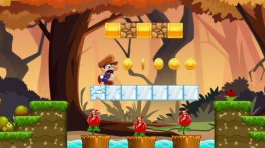 致敬超级马里奥系列的核心玩法,主角形象为经典红帽水管工,需在八大主题岛屿间推进主线,总计逾百个独立关卡。每关设有固定终点旗杆与隐藏要素,击败关底BOSS为通关前提。场景中随机分布强化道具:含子弹类远程武器、体型增大药剂、无敌星等,拾取后将即时改变角色外观与能力属性,影响后续跳跃高度、攻击范围及容错空间。