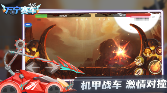 核心玩法为1v1快节奏对抗,单局时长严格控制在60秒内。全系赛车配备唯一主动技能:闪现(瞬移位移)、斩首(强制击飞)、护盾(3秒无敌)、磁吸(牵引对手车辆),技能冷却时间介于8–12秒区间。车辆建模采用夸张比例风格,轴距、轮径、离地间隙等参数经艺术化放大处理,但动力曲线仍遵循真实内燃机特性。碰撞判定采用多边形包围盒算法,支持车身任意角度接触反馈。