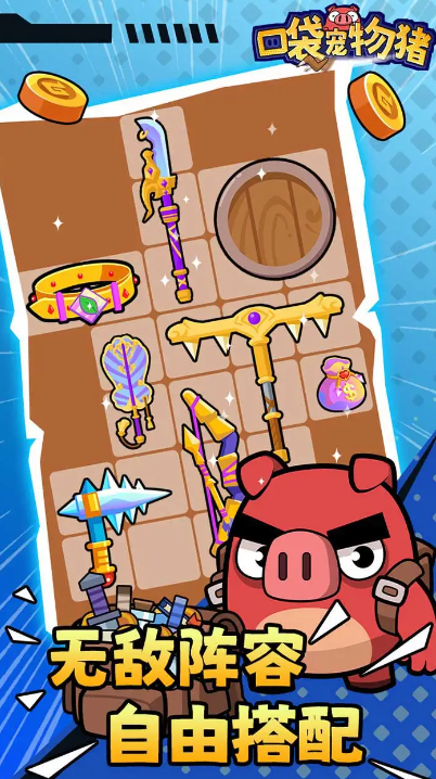 本作创新整合了动作闯关与装备合成两大系统。玩家操控唯一主角——一只红色小猪,逐层挑战副本关卡。战斗中掉落装备种类不固定,地面随机刷新零件模块,支持即时合成升级现有武器;同时提供多分支技能树,每次通关后可随机解锁一项新能力,强化方向由玩家自主选择,构建差异化成长路径。