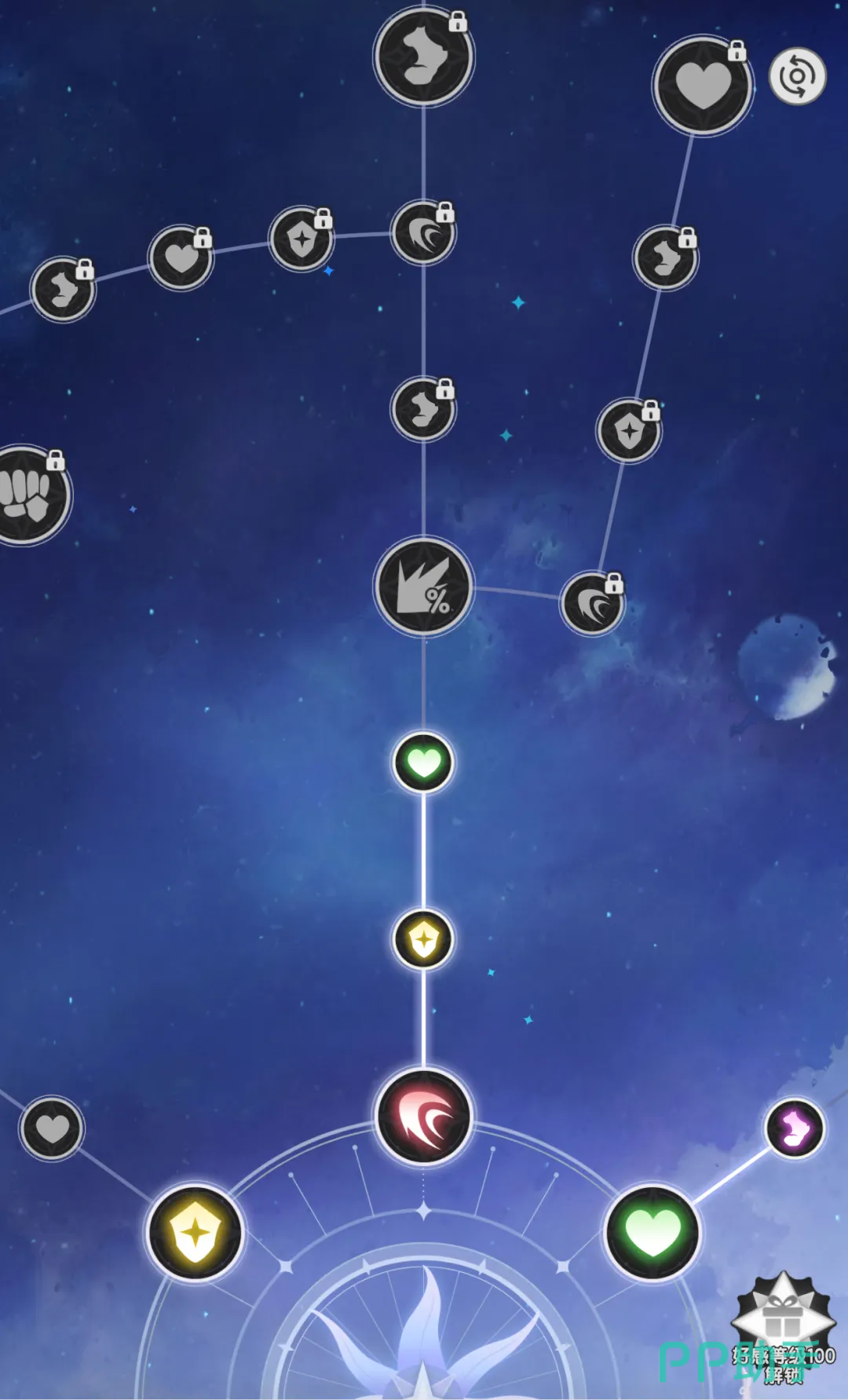 系统配套“独立星盘”机制:每位星神拥有专属天赋树结构,玩家需消耗对应星神天赋点道具,逐层激活节点,解锁差异化属性增幅。首期实装伙伴为星神朵菈,其战斗定位为暗元素范围控场型输出角色。