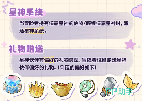 触发条件明确:当玩家持有任意一枚星神信物,或已成功解锁任一星神图鉴时,系统即自动激活。“星间之神”并非传统召唤类伙伴,而是以“好感度驱动型养成”为核心——每位星神具备唯一偏好的礼物类型,仅限赠送对应品类方可提升好感;错误类型礼物无法生效。随好感度逐步提升,冒险者将获得双重永久增益:一是基础属性加成(如攻击力、生命上限等),二是委派任务成功率与资源产出率提升;当好感度达成指定阶段目标后,还可领取专属外观、稀有材料及限定技能书等奖励。