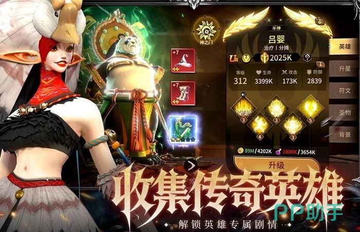 本作核心策略维度体现在英雄协同体系:角色库横跨神话传说、历史典籍与原创幻想设定,涵盖熊猫、女巫、吸血鬼等多元形象,每位英雄拥有独立技能机制与专属背景叙事。阵容构建强调属性克制、技能联动与场景适配,数值成长需服务于战术目标,而非单纯堆叠战力。