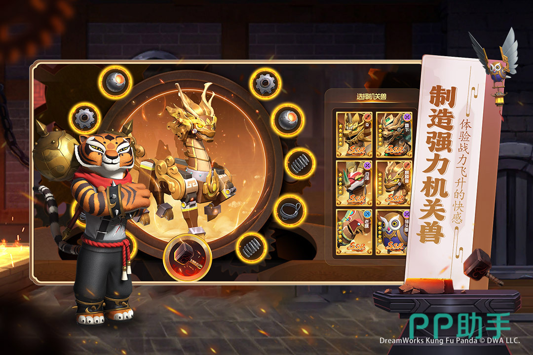 模拟经营中,游戏提供了自由的建设系统,面馆、建筑装饰等,也就是搭建属于自己的神龙谷,通过模拟经营可以获得,角色提升的一些资源。而策略战斗中,主要通过收集英雄卡牌,游戏中提供了功夫熊猫中超过50个经典角色英雄,可通过阵容组合、羁绊系统以及合体技能等,进行战斗,策略组合方式灵活多样。