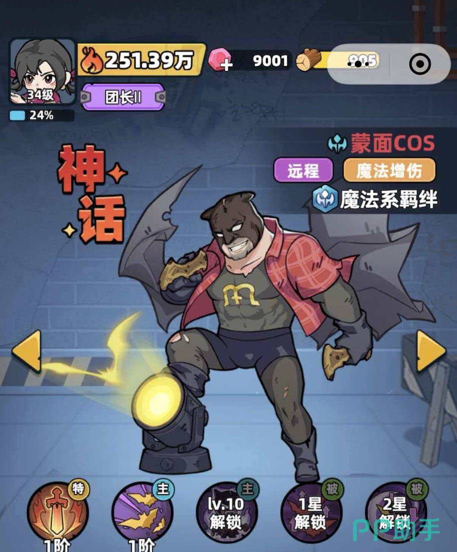 值得注意的是,蝙蝠每次命中均可为全队施加增益:提升全体魔法系英雄伤害输出,并基于实际伤害量返还生命值。这一双重辅助机制,显著增强队伍在高难度副本中的续航能力与容错空间。该角色并非孤立输出点,而是以技能链为纽带,驱动整支队伍高效运转——正因如此,玩家自发赋予其“超雄猩猩”的非官方称谓,既契合其视觉张力,也精准概括其实战定位。