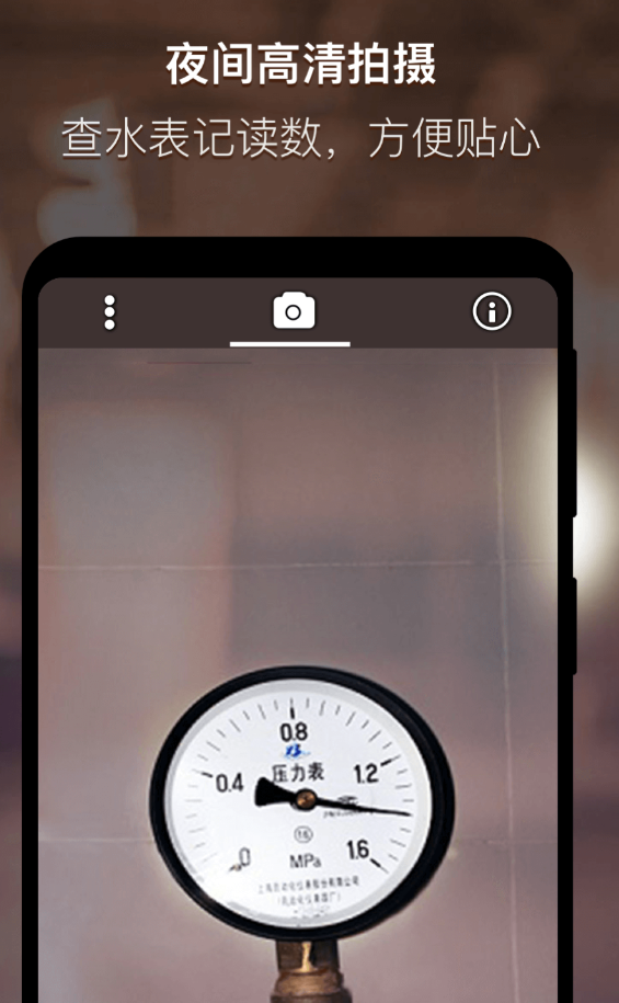 光线不够的地方,普通相机拍出来的东西模糊又有噪点,夜视相机专门解决这个问题。图像处理算法把亮度和对比度拉上来,黑暗里的画面也能看清楚。LED常亮辅助拍照,不依赖环境光,读水表、夜间巡逻这类场景用得上。降噪算法减少了画面颗粒感,手动调焦让细节更清晰。九宫格构图线辅助,拍出来的照片构图不会太歪。