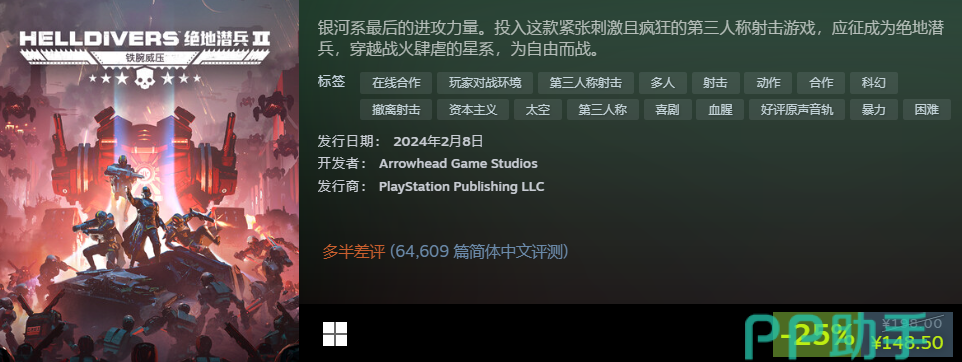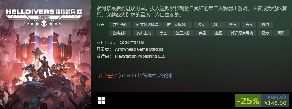 玩家作为银河系最后的力量,身上担子很重,出征各个星球解决虫族,还需要跟队友一起阻止虫子入侵地球的计划。现在售价为7.5折,总价是148.5元,喜欢射击类玩法,又喜欢mmo元素,买它肯定没错的。