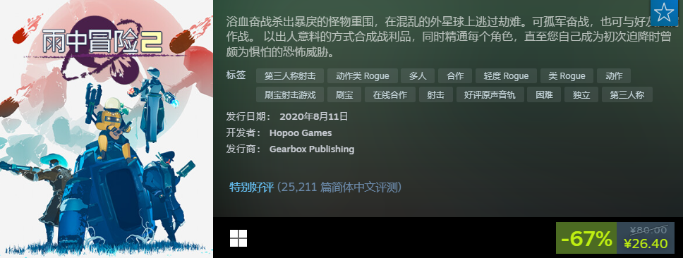 卡通画风,但是玩法很硬核,每个关卡里面都安排了暴戾的怪物,我们要跟队友配合好,用手中的武器浴血奋战,杀出重围。售价很低,花26.4元就能拥有。