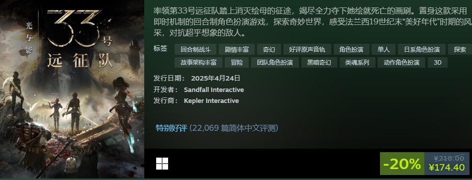 能拿到年度游戏的荣誉,就能证明它的优秀,采用即时机制回合制战斗玩法,考验玩家战术以及反应力。现在促销价格是174.4元,喜欢就抓紧购入吧。