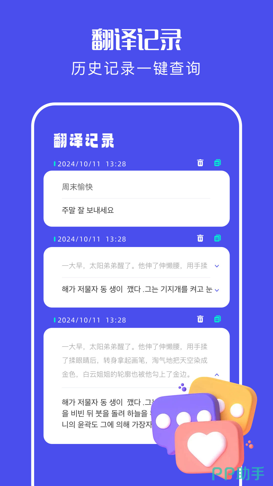 专注多语言智能互译体验,提供清晰的翻译历史管理与分类词汇支持,其中韩语专项词库便于针对性学习。界面逻辑清晰,响应延迟低,适用于长期语言积累与即时沟通双重目标。