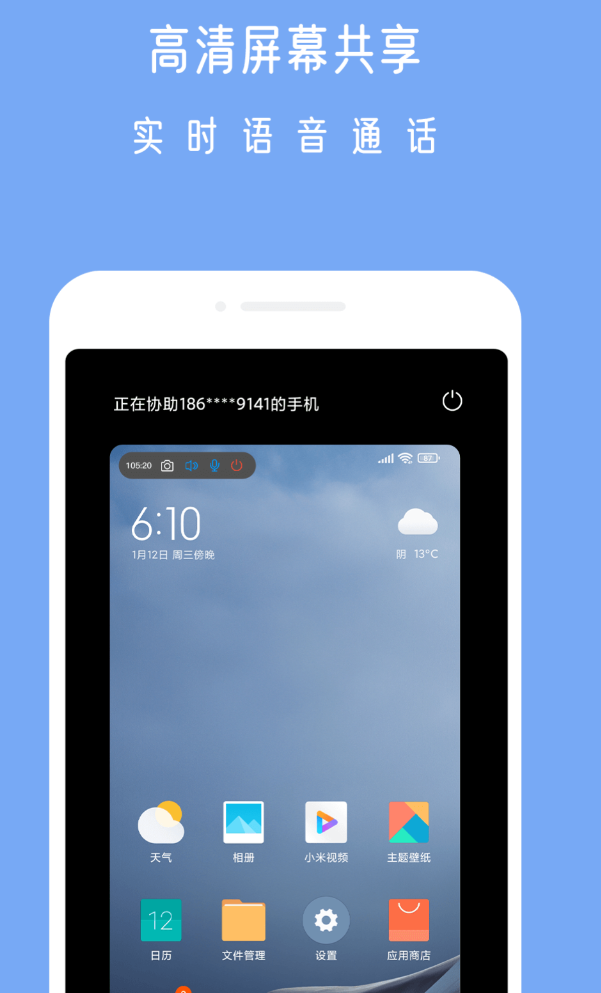 安装包只有14.26MB,体积小,不占内存,定位轻量工具。不需要注册就能用基本功能,手机也不用root权限,直接完整远控,临时协助的场景下很方便。高清屏幕共享支持横竖屏自动转换,共享时系统声音也能同步传输。语音通信内置降噪算法的,嘈杂环境下通话质量稳定,多人接入模式下画面和语音同步也没什么问题。