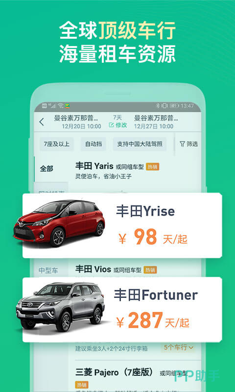 惠租车是一款专注于海外领域的自驾租车软件。全球有五万多家门店,与Alamo、Europcar、Hertz、Sixt等多家国际车行合作,几乎到哪里都可以租车;同时,补充车险,让你的旅程无后顾之忧;惠租车全网五折起,比直接去租车网站预定更为划算。