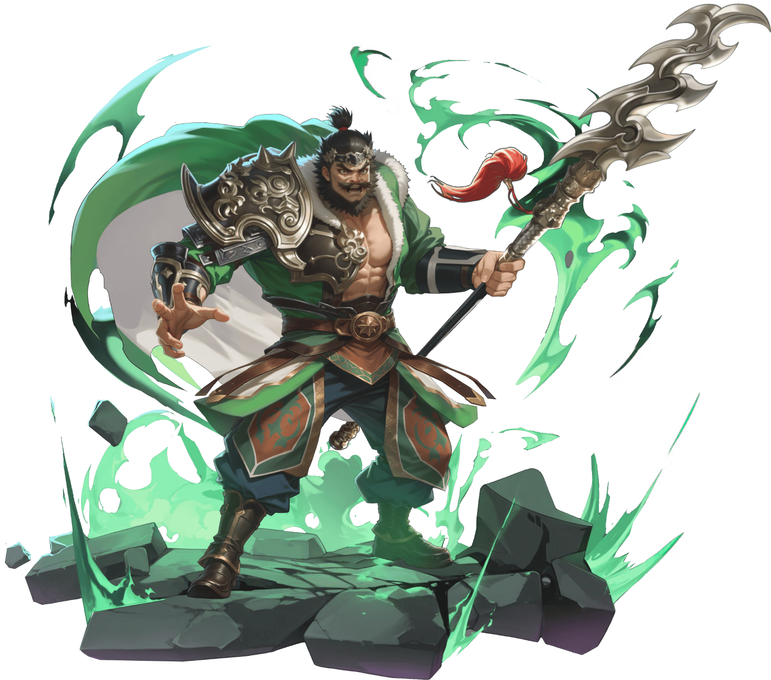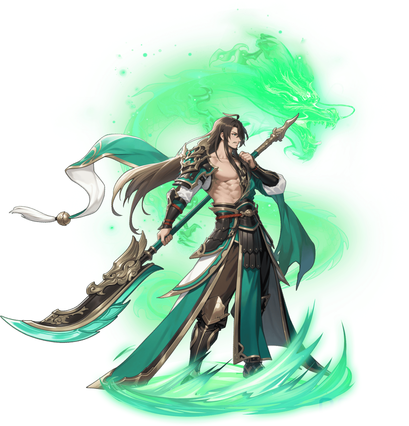 第二个武将就是关羽,关羽是一个比较出色的单体输出,他的技能机制使得关羽比较全面,当对面的血量越低的时候,关羽的伤害倍率会越高,其普通攻击可以造成额外的伤害,而大招对于低于50%的单位直接必定造成暴击效果,很显然该武将是比较适合收割后排的,比较适合双核阵容培养。