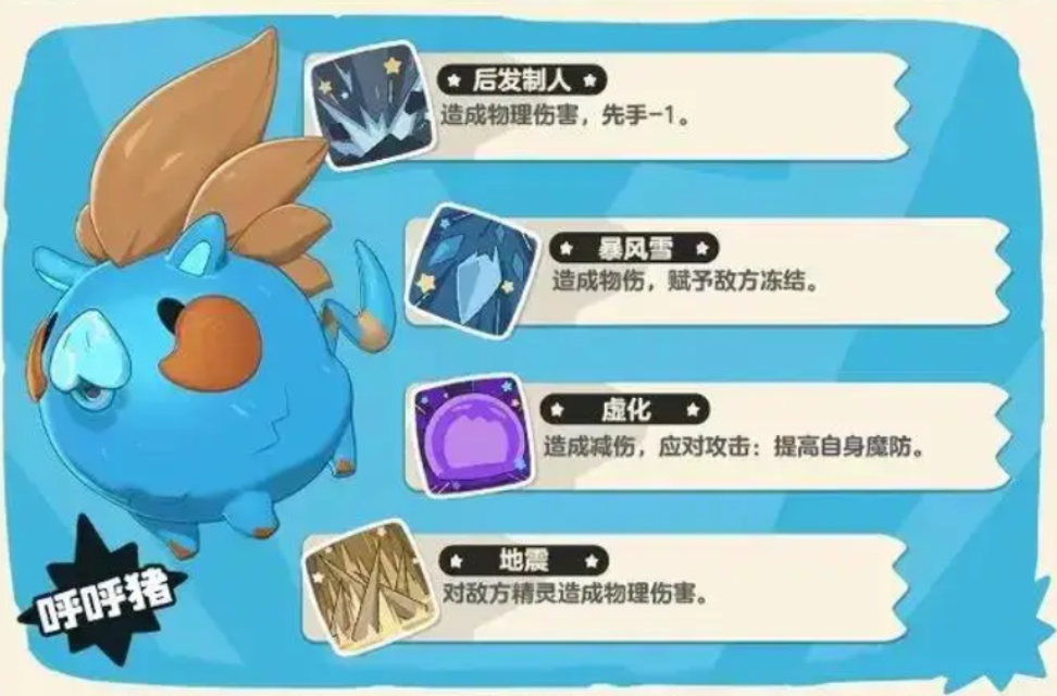 在洛克王国的战斗体系中,呼呼猪是兼具爆发输出与战术控制能力的核心宠物之一。其冰系主导的技能组合,不仅覆盖群体压制与单体斩杀场景,还具备显著的战场节奏干预能力,使其成为PVP与高难度副本中备受青睐的战术支点。以下为呼呼猪的全面解析。