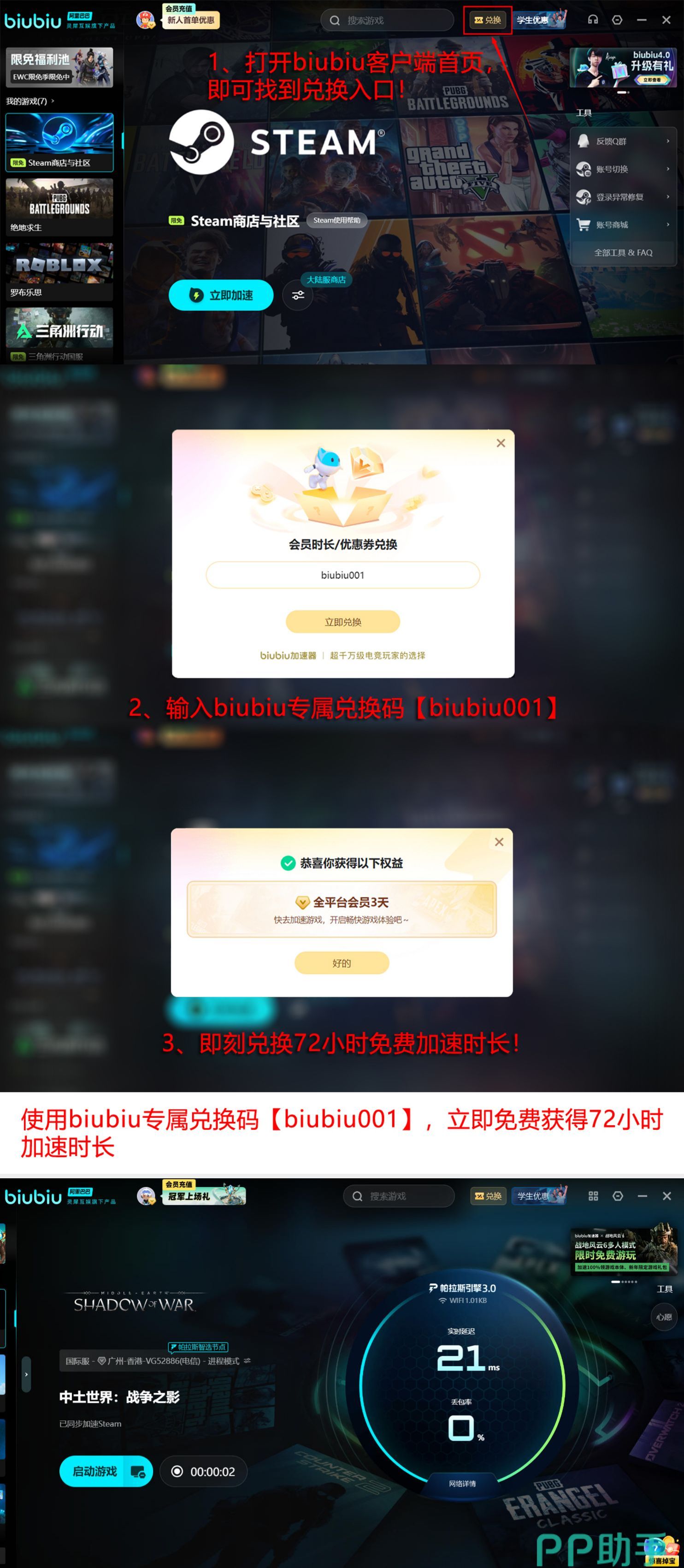 在整个行业内都备受好评的加速器,当然也是因为各方面所拥有的技术水平都非常的出色,如果还没有体验过的话,如今的福利也是领取方法特别简单的。第一次注册的用户,如今只要注册,然后登录平台当中,就能够获得24小时的加速时长。另一种就是可以在领取界面当中,输入【biubiu001】,也能获得三天加速时长,新用户加上这一种方法,最多可以叠加至96个小时。